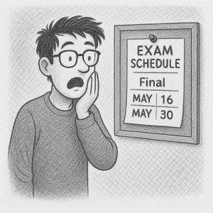 This taught me the importance of asking for help when in need, despite that I was terribly embarrassed to admit that I had not checked the date on the exam schedule print-out.